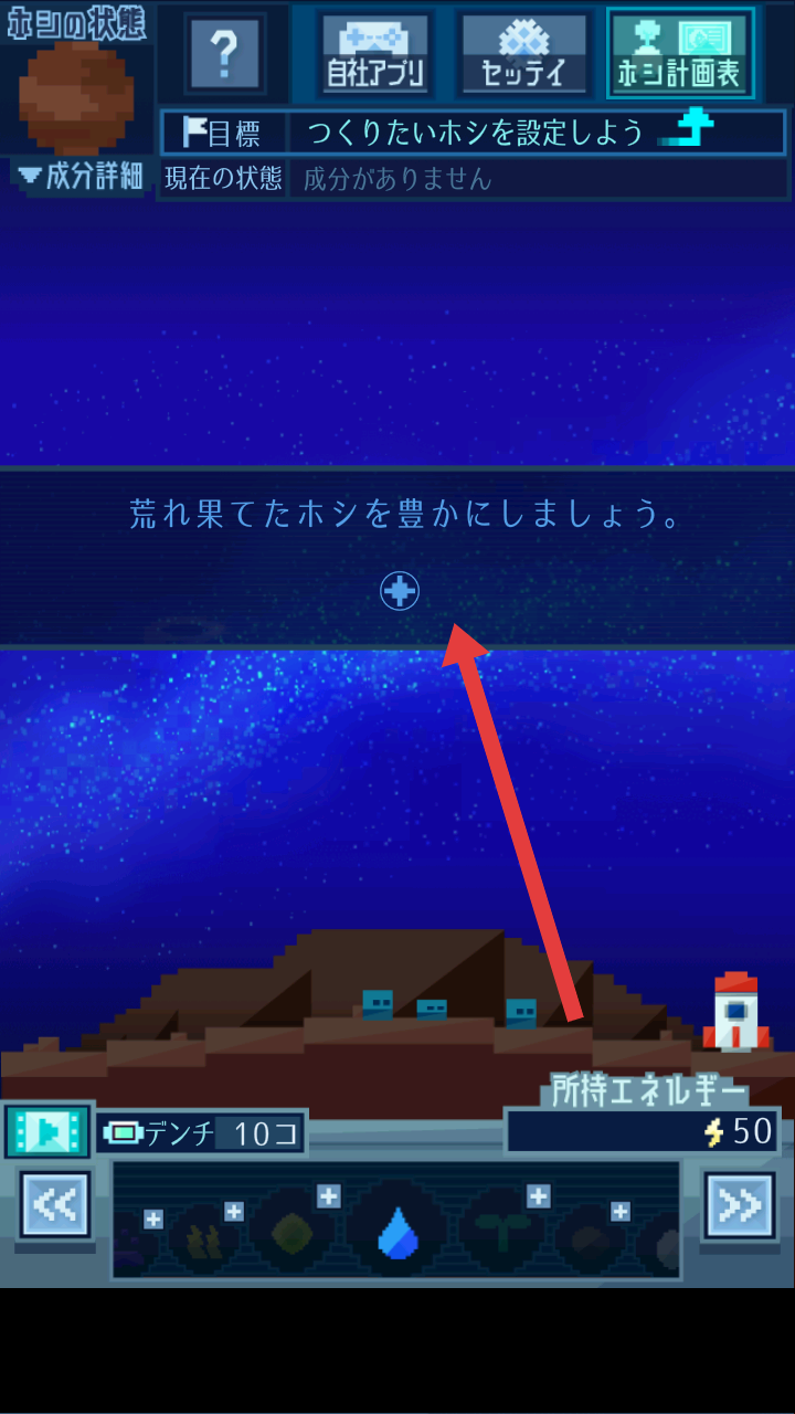 1、需要点击平凡的星球的游戏界面中间的【+】的按钮,开启荒芜星球的改造流程,迈出星球复苏第一步。