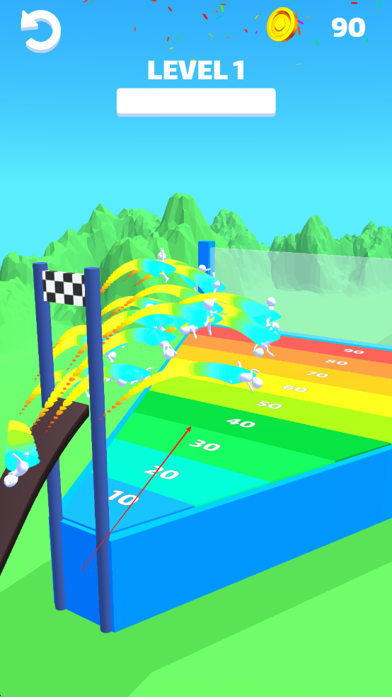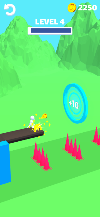 3、简约解压画风:采用低多边形美术风格,角色跳跃动作流畅轻快,数值变化特效清晰直观,营造轻松游戏氛围。