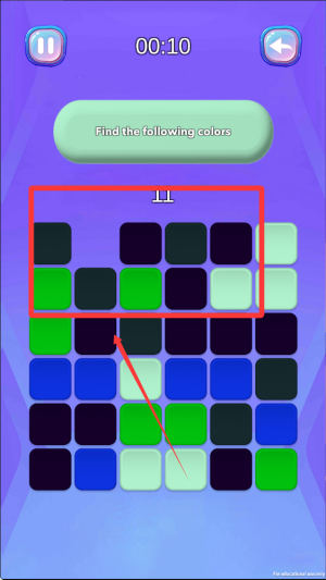 3、玩家点击与目标颜色匹配的方块即可完成消除,消除数量达到要求即可过关,操作简单但需要精准的判断和快速的反应。