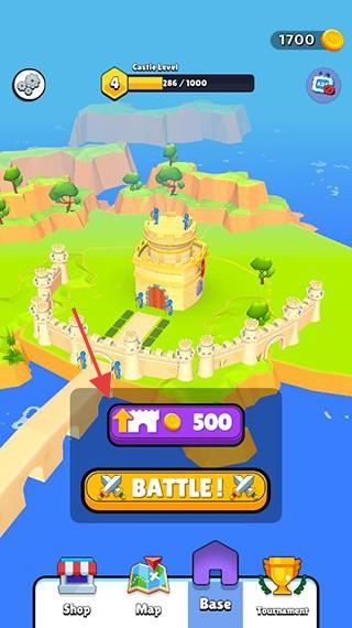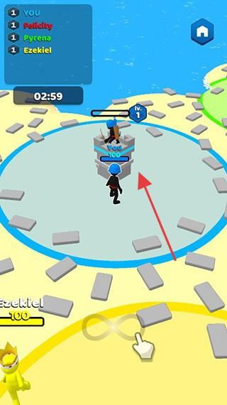 2、点击“BATTLE!”按钮,进入对战地图,操控己方士兵,向敌方塔楼发起进攻,争夺领地与资源,同时需防守己方塔楼。