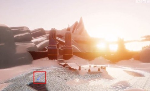 2、空间层次:远景山脉、中景遗迹、近景雪地,三层空间引导探索动线,强化“未知→发现”的探索期待。