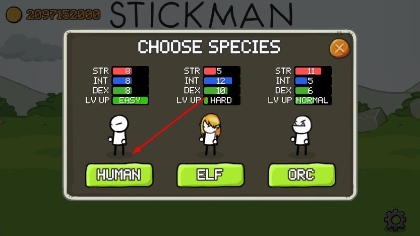 1、进入游戏先选择人类兽人或精灵物种,搭配炮手弓箭手等职业,在关卡界面点击开始,操控火柴人移动射击迎战怪兽。