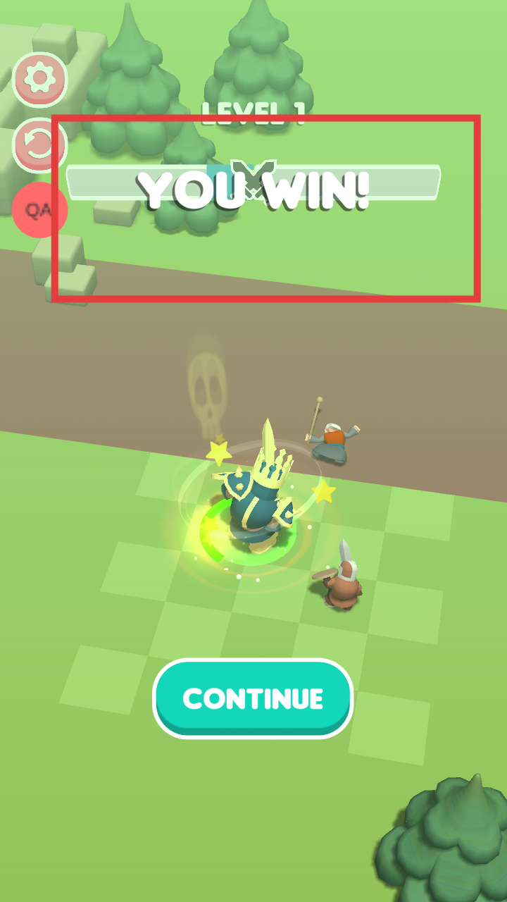 3、获胜显示【YOU WIN!】后,点击【CONTINUE】进入下一关,积累经验,优化士兵合成策略,挑战后续关卡。