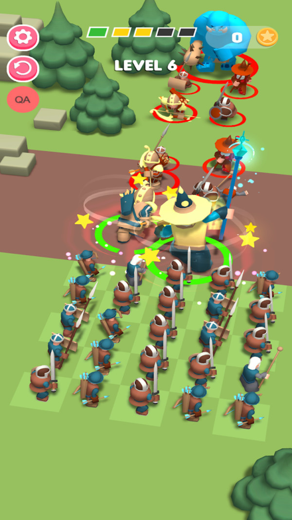 2、战斗时,操控合成后的士兵【戴皇冠】,攻击红圈标记敌人,利用技能和数量优势,推进战局,关注血条变化。