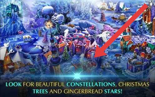 2、切换至雪景小镇,按提示寻找星座(CONSTELLATIONS)、圣诞树(CHRISTMAS-TREES)、姜饼星(GINGERBREAD-STARS),探索收集,解锁新区域。