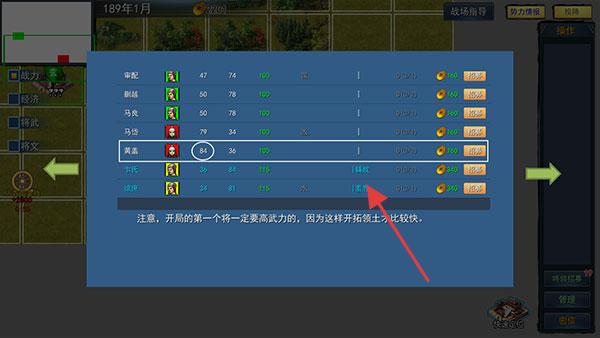 3、开局的第一个武将一定要选择【高武力】的,因为这样开拓领土才比较快。