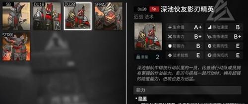 1、深池伙友精锐(近战法术):生命值A+、移动速度B,攻击力与防御力为B,法术/内伤抗性均为E,司职深池精锐行动队输出位,与同队精锐同行时自重能力强化。