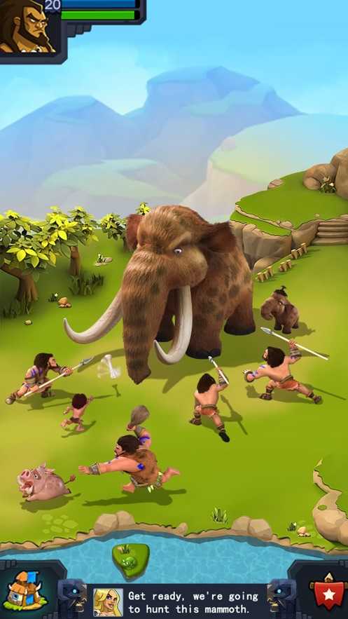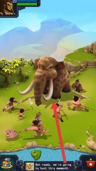 2、操控原始人团队,狩猎猛犸象(Woolly-Mammoth),分工协作(攻击、辅助),击败巨兽,获取资源。