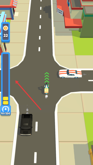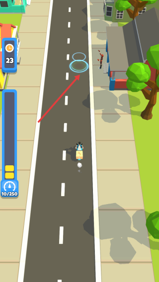 3、沿路线,吃道路光圈道具,攒能量,保持速度,准时送达货物。