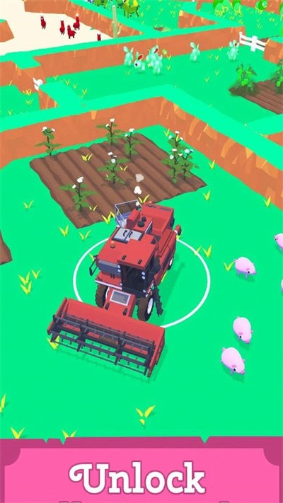 3、农场场景切换:解锁麦田、牧场、森林等不同主题农场,每个场景设置独特地形,如麦田中的田埂、森林里的树桩障碍。