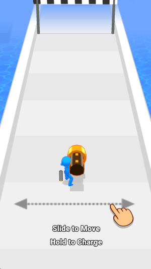 2、当角色移动至赛道末端的炮筒装置时,长按屏幕完成蓄力,瞄准前方目标后松开手指发射角色,注意避开障碍物。