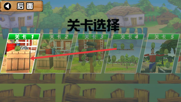 2、点击开始后,进入关卡选择页,选“关卡1”,该关场景含木箱等元素,点击开启首关挑战。