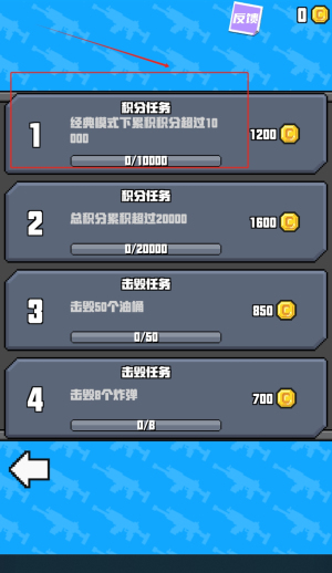 2、进入积分任务界面查看挑战目标,完成"经典模式积分超10000"等任务可获得金币奖励,用于解锁新装备。