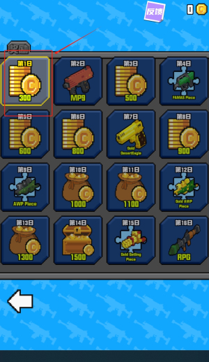 3、每日登录领取连续签到奖励,首日获得300金币,后续天数可领取MP9等武器,坚持登录解锁稀有装备。