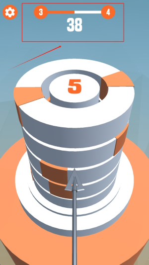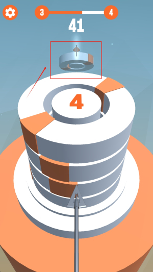 2、当圆环开始旋转后,瞄准标有数字"4"的橙色区域,在恰当时机松手射箭,命中彩色部分可获得对应分数38分。