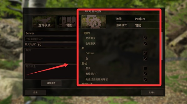 2、这里以单人模式为例,选择好之后设置服务器的各类选项。
