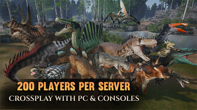 3、服务器支持容纳200位活跃恐龙角色,实时互动带来动态竞争环境,使每次生存都充满未知与变数。