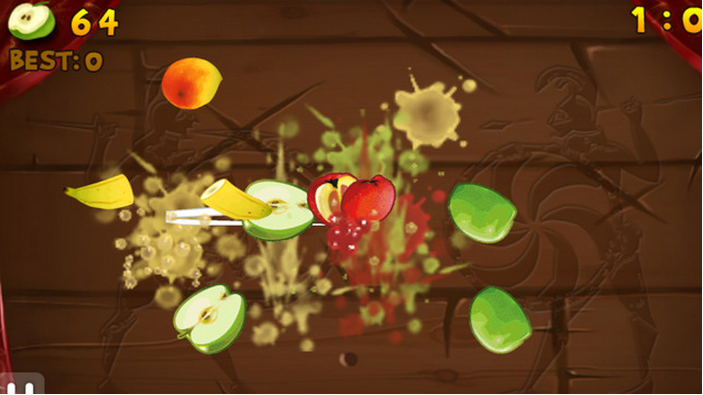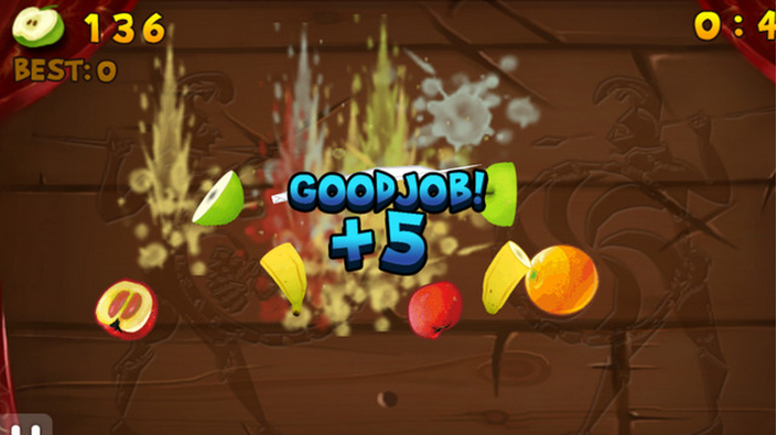 1、进入局内后滑动屏幕切割飞溅的水果,每切碎一个水果积累分数,注意避开同时出现的炸弹。