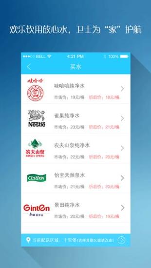 曾几何时,你是否还在楼梯口寻找桶装水小纸条广告?自此,你不用担心找不到送水电话了,只需要打开“水卫士”,你便能通过自动定位,轻松购买附近的桶装水。然后,你只需要一个按键“叫水”,送水工人就会快马加鞭为您送到!