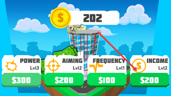 2、升级【AIMING】(Lv1→Lv2,花费200),优化攻击精准度,让破坏效果集中,高效摧毁建筑。