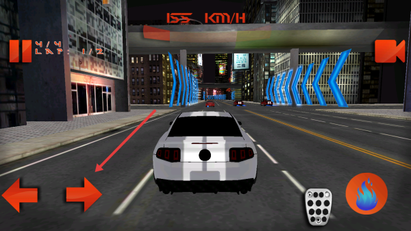 2、城市赛道用左右箭头控方向,避车,保持高速(155KM/H),冲过弯道。