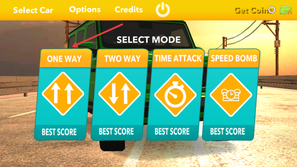 1、在模式选择,点【ONE WAY】,选单向行驶模式,开启驾驶。