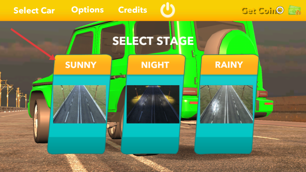 2、选【SUNNY】天气场景,进入阳光明媚的道路赛道。