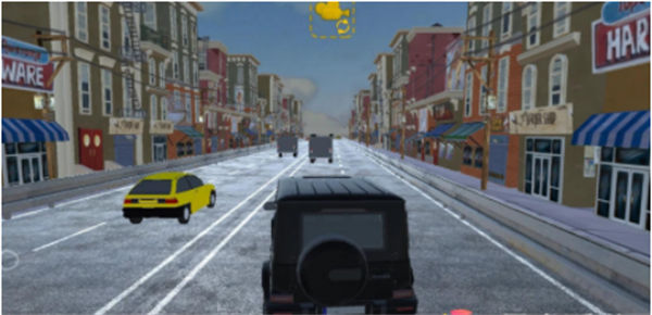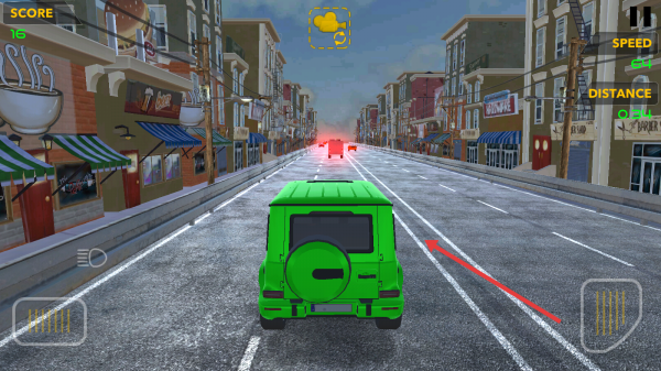 3、驾驶绿色汽车,沿城市道路,避前方车辆,看右侧【SPEED】【DISTANCE】,保持安全行驶,冲高分。