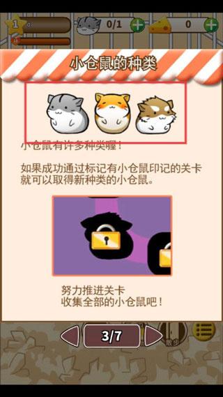 3、如果成功通过标记有小仓鼠印记的关卡就可以取得新种类的小仓鼠,努力推进关卡,收集全部的小仓鼠吧。