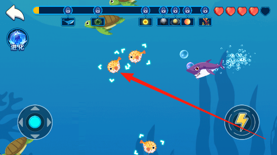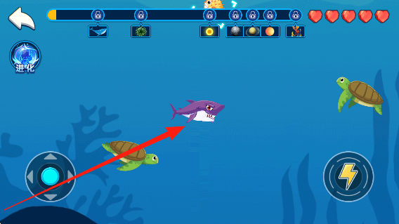 1、基础操作体系:点击屏幕左侧控制鲨鱼方向,点击屏幕右侧发射武器,双指操作加速游动,通过组合操作完成复杂战斗任务,操作简单直观,让玩家专注策略规划。