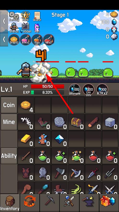 1、进入游戏后在地下场景探索,点击怪物或宝箱收集基础物品与道具,开启初始收集之旅。