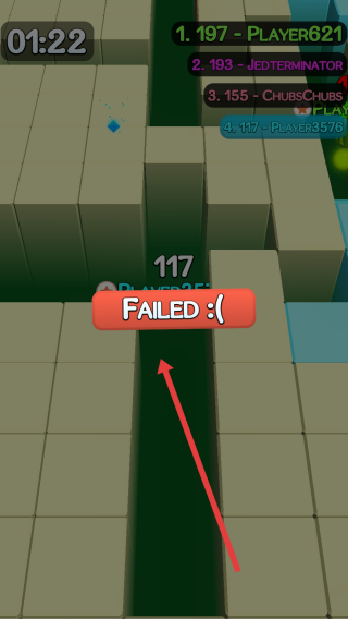 3、若失败显示“FAILED:(”,可重新开始,调整移动策略,避开危险区域,提升存活时间,冲击更高排名。