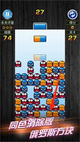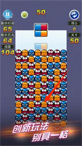 3、可爱画风音效生动:采用卡通画风,病毒形象可爱搞怪,色彩丰富的画面搭配清脆的消除音效,以及随节奏变化的背景音乐,让玩家轻松沉浸在氛围中。