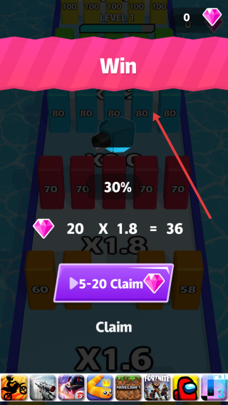 3、通关后点【Claim】领钻石奖励,用钻石解锁皮肤/加倍收益,冲更多关卡。