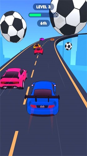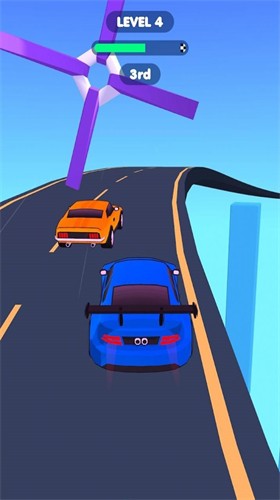 3、动态特效表现:赛车碰撞障碍时触发夸张弹飞效果,跳跃腾空留下彩虹尾迹,击碎特殊方块迸发缤纷光点,搭配活泼音效增强操作反馈,提升视觉与听觉体验。