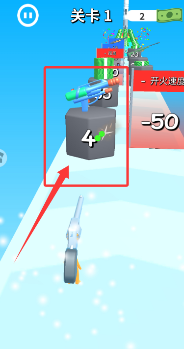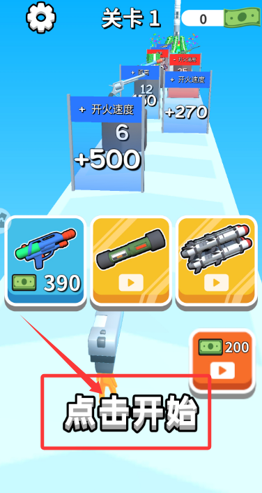 1、启动游戏操控持枪角色开启跑酷射击,在充满障碍的赛道上展现敏捷身手。