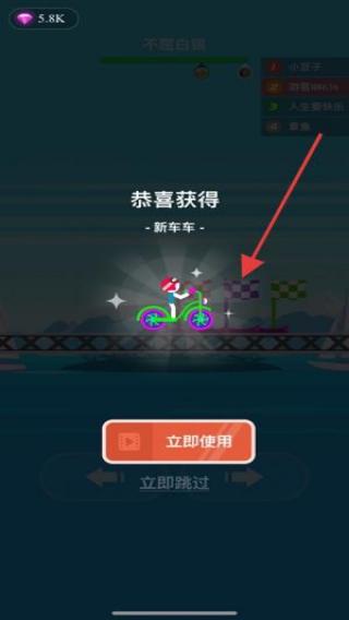3、通关后领“新年车”奖励,点【立即使用】换新车,继续挑战高难度赛道。