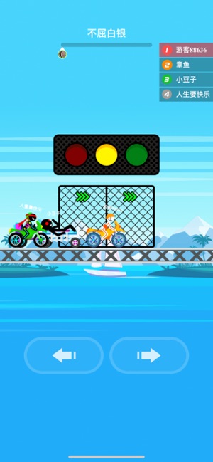 2、用左右箭头控方向,过断桥、避障碍,保持平衡,和其他玩家(小旺仔等)竞速。