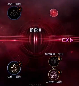 2、阶段二,全开,法伤重构要带上,这个可以提供法术伤害,是实打实的提升,抉择带主宰者,在法爆队可以获得更高的伤害。