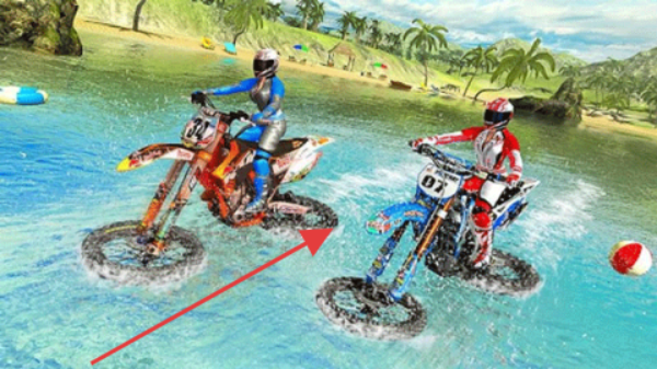 1、选摩托(单人/双人),穿水上赛道,避障碍,保持平衡。