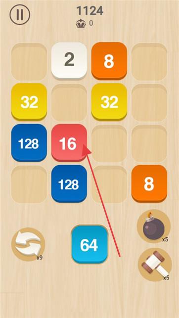 2、在游戏棋盘,滑动相同数字方块进行合并,朝着合成更大数字努力,同时留意道具使用时机。