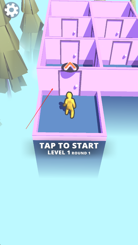 1、点击开始游戏,滑动屏幕轻松控制角色走进房间,从众多房间中精准判断,选择安全的房间,一步步深入迷宫。
