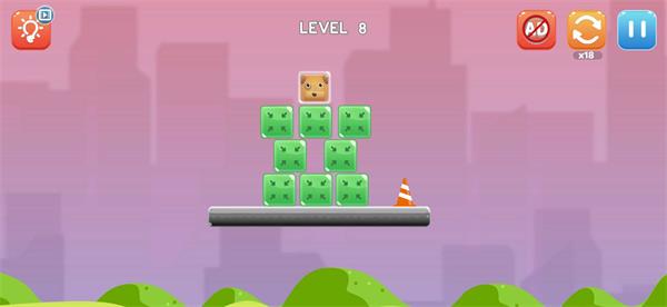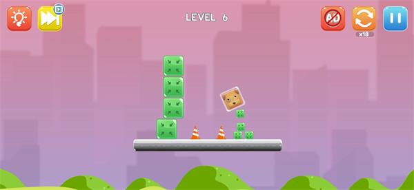 1、脑洞解谜玩法:部分关卡设置意想不到的解谜思路,需突破常规思维,如利用方块反弹、搭建临时平台等技巧。