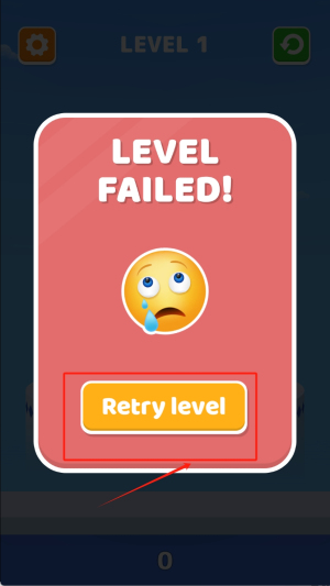 2、若挑战失败,点击红色提示框中的“Retry level”黄色按钮重新开始当前关卡,调整策略再次尝试。