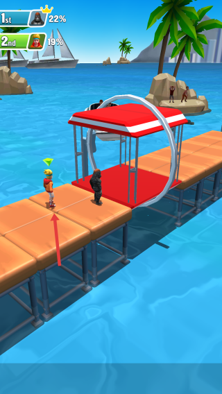 3、多人对战进阶技巧:开局抢占内道缩短距离,通过「肩撞」动作推开相邻玩家;在「狭窄独木桥」等瓶颈区域,故意放慢速度让对手碰撞落水;终点前释放「终极冲刺」技能。