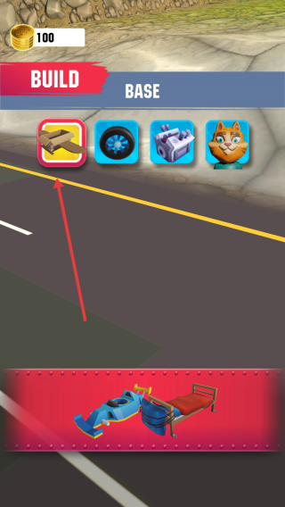 1、在“BUILD”界面,选第一个建造图标,用金币(100)造赛车部件,组装基础赛车。