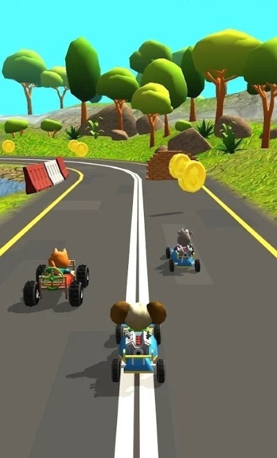 3、多人欢乐对战:支持本地分屏与在线联机,操控赛车互相碰撞干扰,利用外形优势在特殊赛段反超,搭配语音互动,增强社交趣味性。