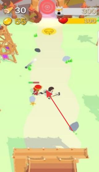 1、在关卡场景,操控角色追击红框标识敌人,利用武器攻击,获取金币等奖励。