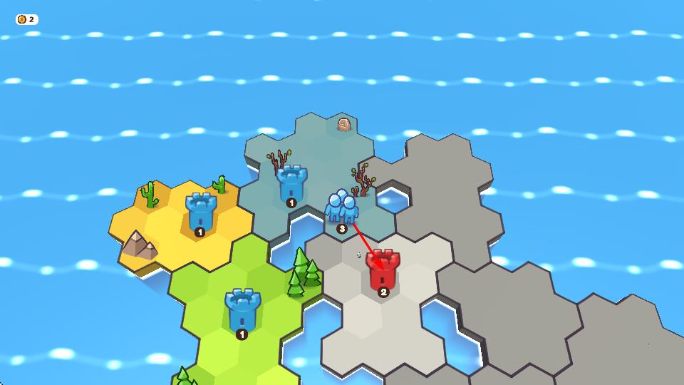 2、占领含金币的地块,积累资源,用于建设、升级城堡,或生产战斗单位,增强势力。
