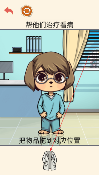 3、在治疗看病环节,把物品拖到对应位置,帮角色治疗,合理操作完成任务,推动游戏流程。